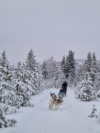 Am fünften Tag besteht optional die Möglichkeit zu einem Schlittenhundeausflug – ein rasantes Abenteuer durch die weite Winterlandschaft.